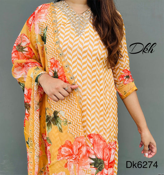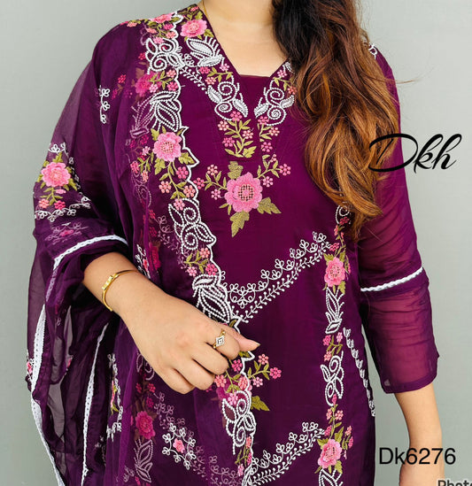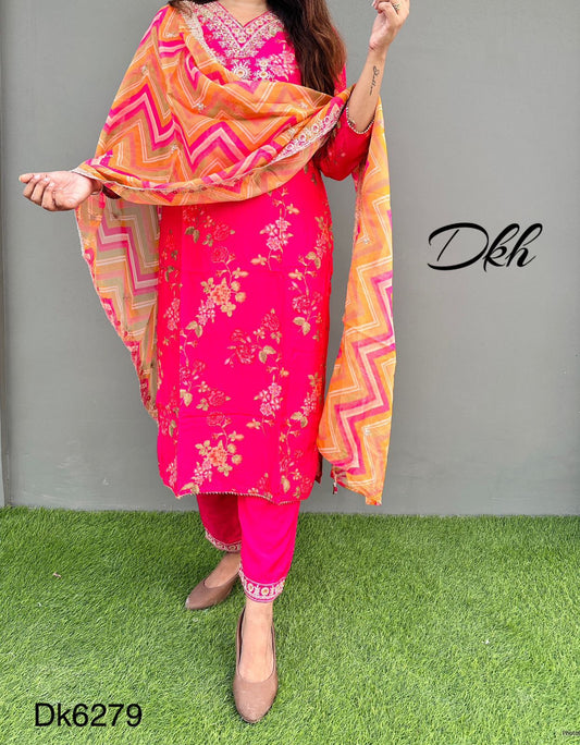 dk6269 Premium pure silk 3 pc suit set with lining inside paired up with pure organza dupatta.
