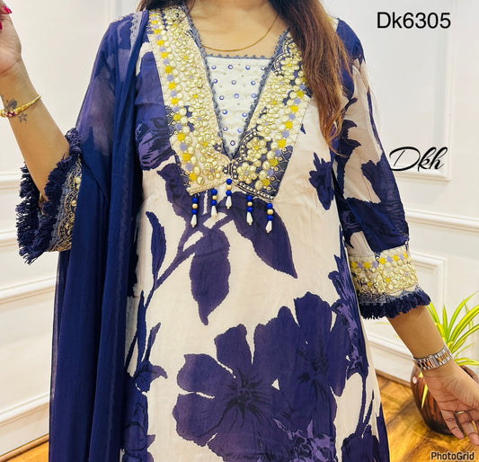 DKh Dk6305 Premium pure chinnon beautifully printed sharara set