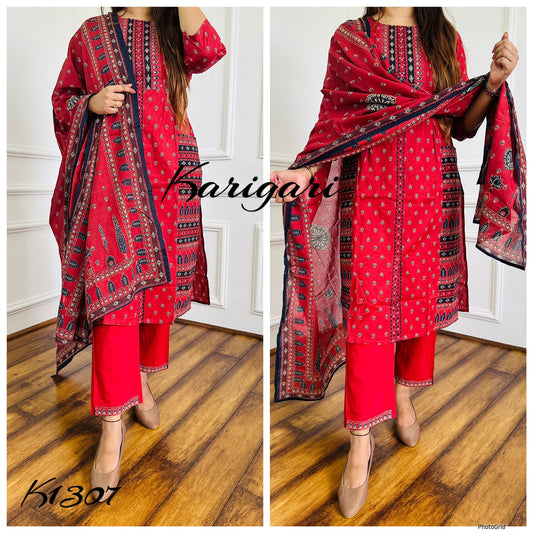 karigari by DKH K1317 Premium cotton 3 pc suit set