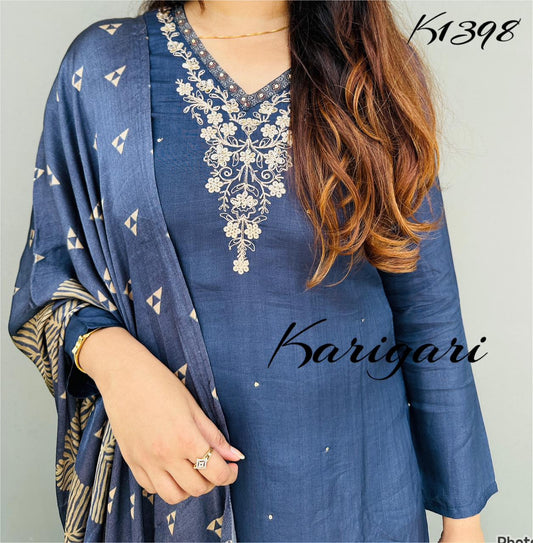 karigari by DKH k1310 Premium maslin 3 pc suit set
