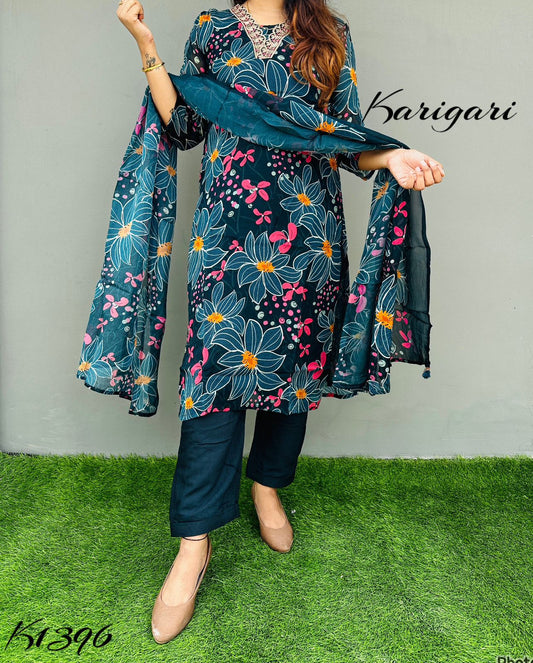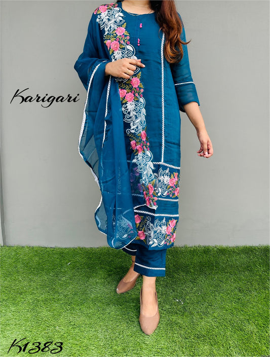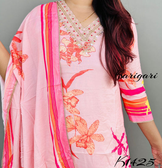 karigari by DKH k1425 Premium maslin 3 pc suit set