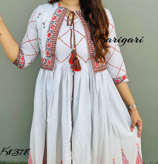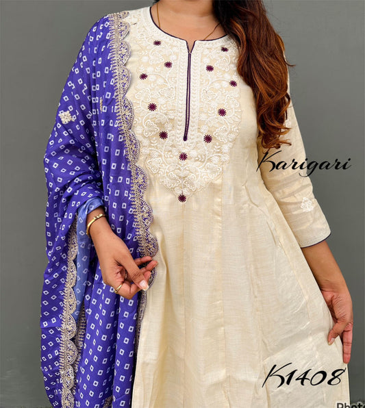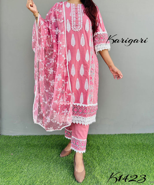 karigari by DkH k1368 Premium cotton schiffli 3 pc anarkali suit set