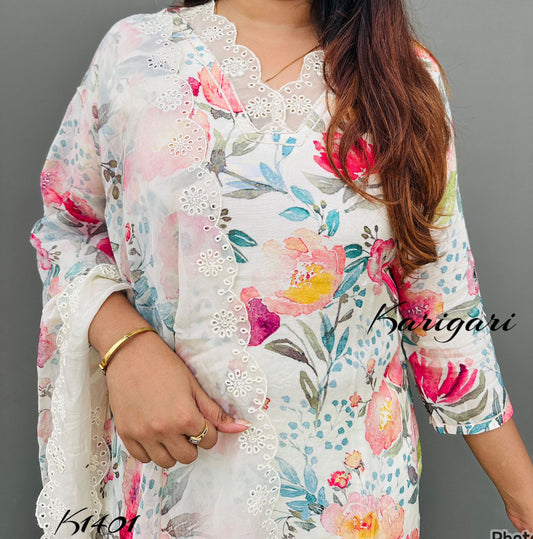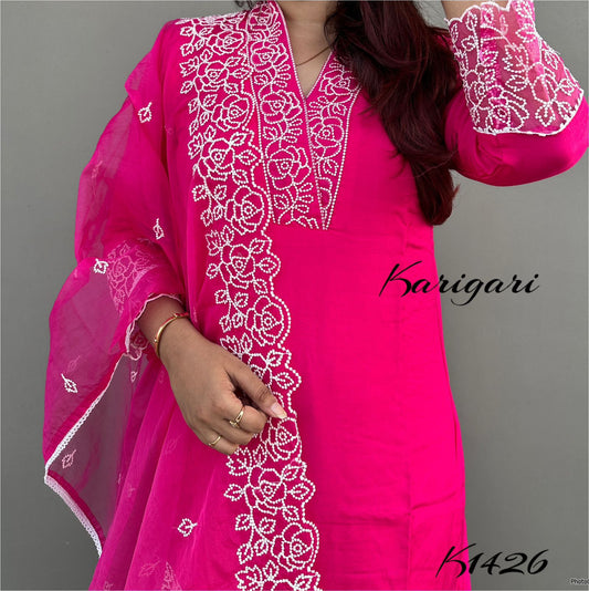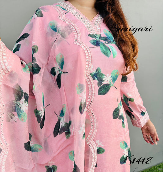 karigari by DKH k1418 Premium pure maslin 3 pc suit set