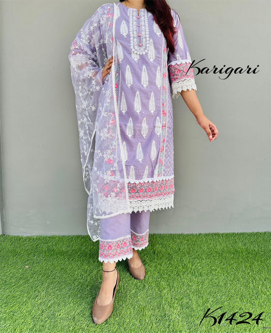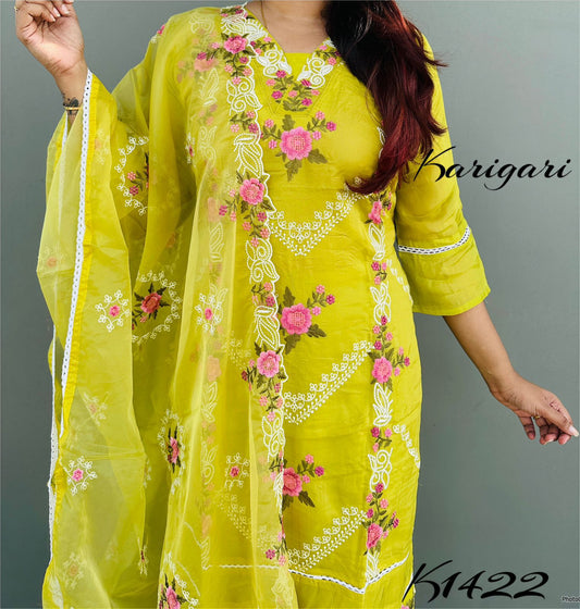 KARIGARI BY DKH K1422 Premium organza 3 pc suit