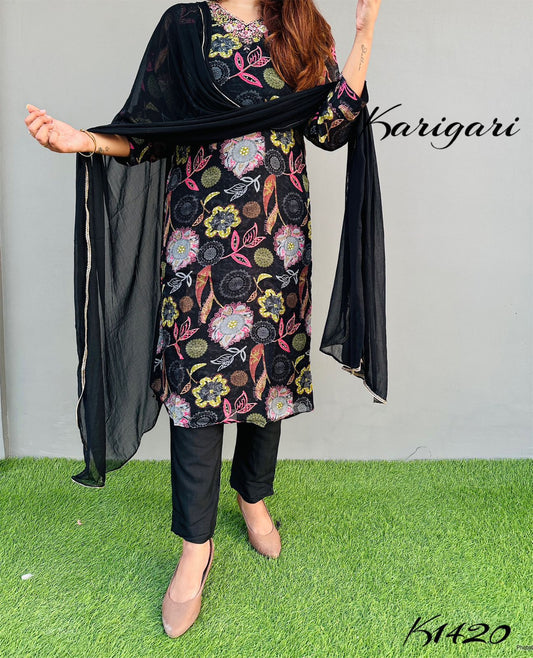 karigari by DKH k1397 Premium quality pure chinnon 3pc suit