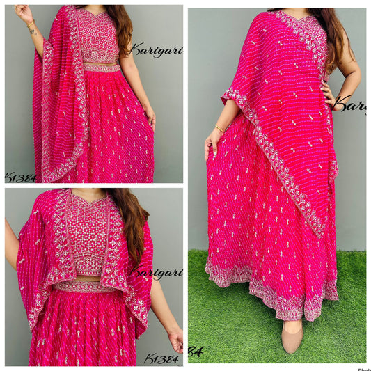 Karigari by DKH k1384 Premium georgette 3 pc lehenga set