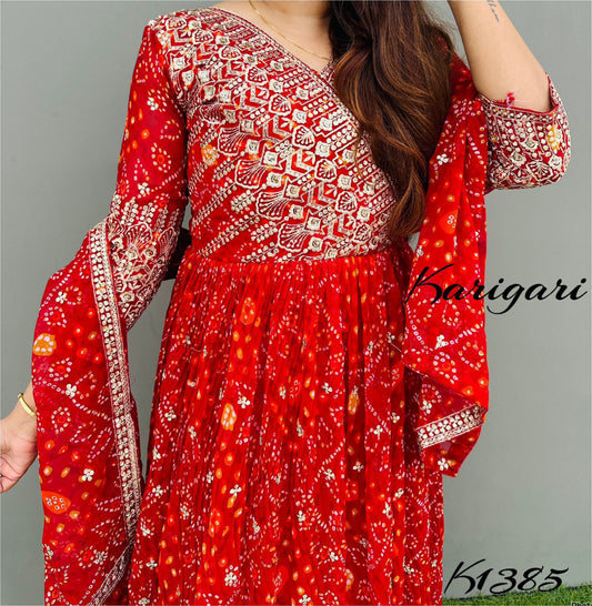 karigari by DKH k1385 bandhni SPECIAL Premium Georgette BANDHNI gown