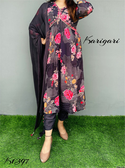 karigari by DKh k1413 Premium chinnon beautifully digital printed gown