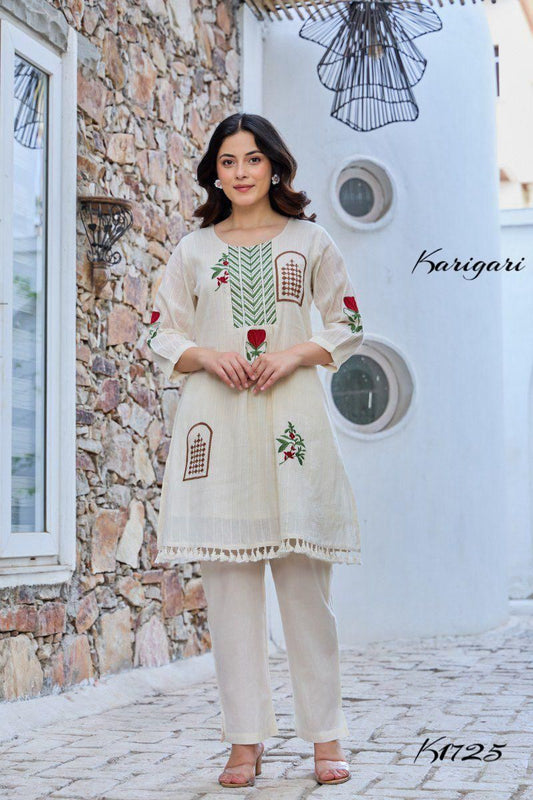 “Self-Textured Cotton Kurti Pant Set – K1723