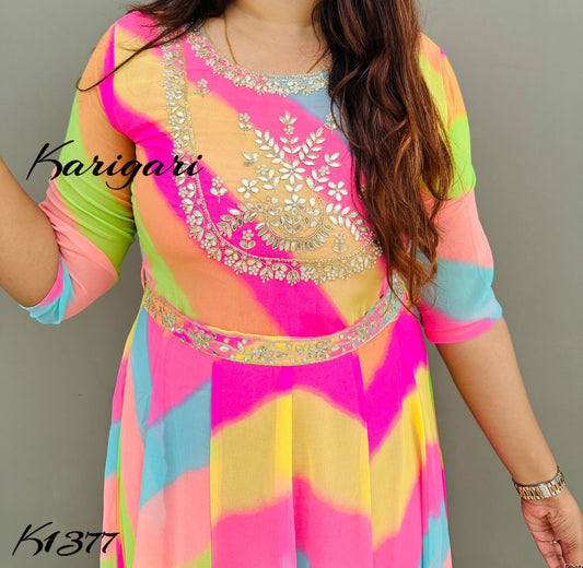 k1377 Premium georgette gown in beautiful vibrant lehriya