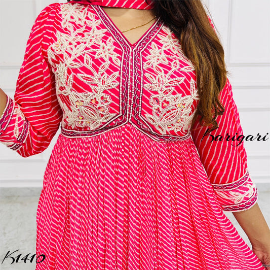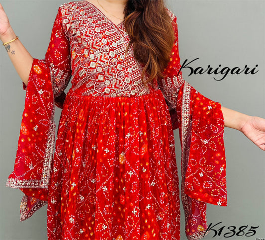 k1385 bandhni SPECIAL Premium Georgette BANDHNI gown paired up with duppatta.