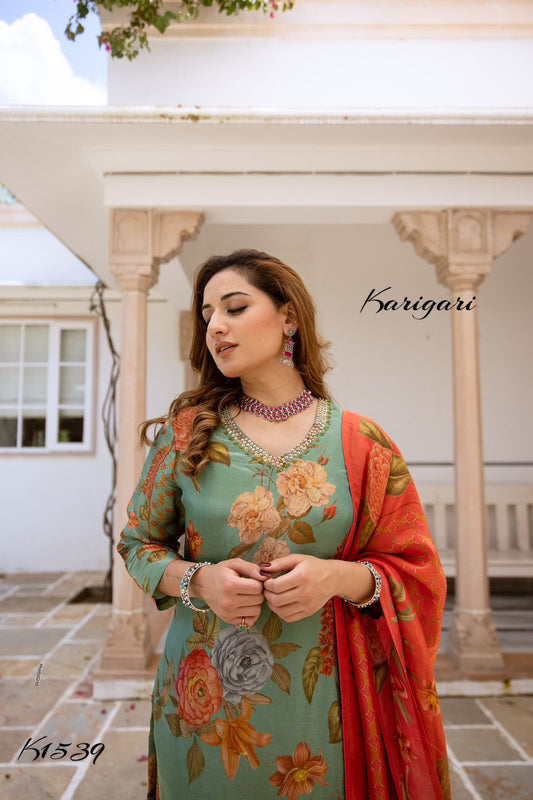 karigari by DKH K1540 Premium viscose muslin 3 pc suit set