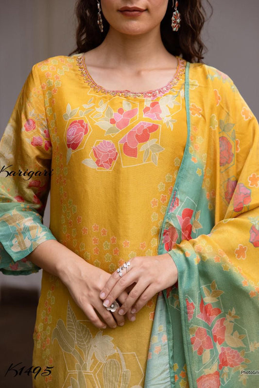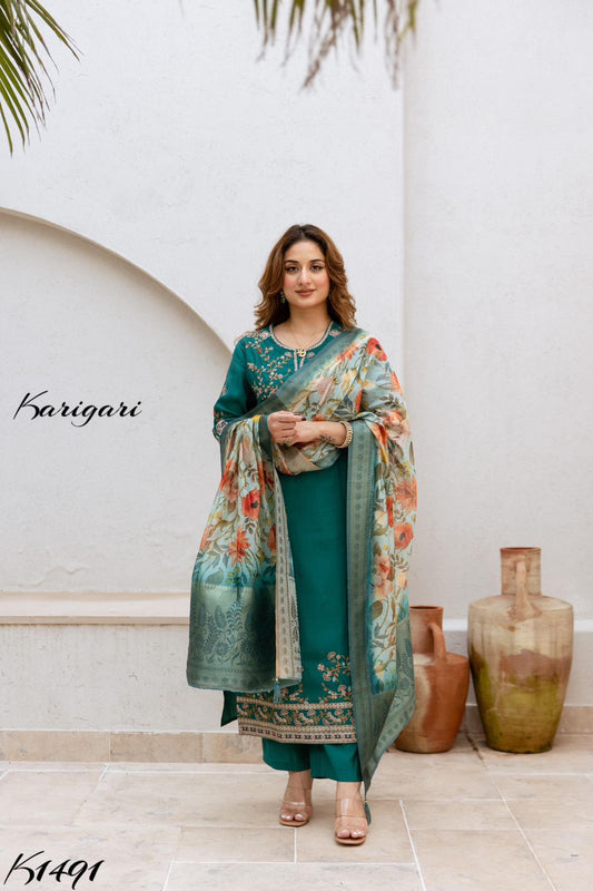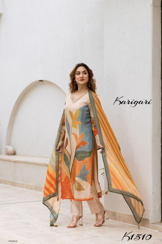 karigari by DKH k1501 Premium roman silk 3 pc suit set