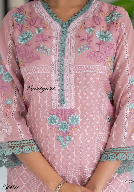Karigari by DKH K1464 Premium georgette schifli 3 pc suit set